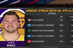 現(xiàn)存球員VS球隊(duì)連續(xù)25+紀(jì)錄排名:
