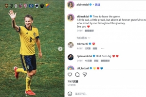 埃克達爾寫道:“是時候告別這場比賽了。有一點難過,有一點自豪,但最重要的是永遠感激在這段旅程中一直支持我的每一個人。再見??”