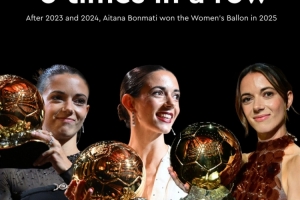 邦馬蒂成為女足金球獎(jiǎng)歷史上最成功的球員,連續(xù)三次奪得金球獎(jiǎng),加入了克魯伊夫、普拉蒂尼和范巴斯滕等男足傳奇的行列。盡管她在個(gè)人表現(xiàn)上取得了巨大成功,但巴薩女足在歐冠決賽中失利以及西班牙女足國(guó)家隊(duì)在歐洲杯決賽中的失敗讓她感到遺憾。不過(guò),她的出色表現(xiàn)使她成為了這兩項(xiàng)賽事的最佳球員。