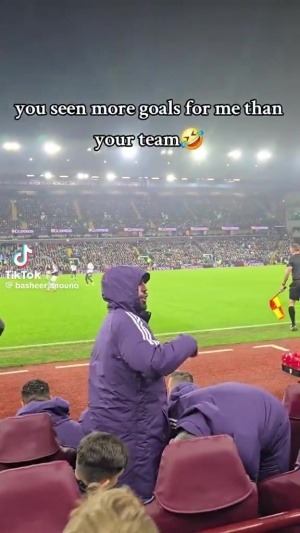 下半場(chǎng)在替補(bǔ)席上,B費(fèi)遭到場(chǎng)邊維拉球迷的嘲諷,他笑著站起來(lái)與維拉球迷“互動(dòng)”。