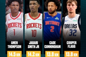 賽季第九周(12月16日-22日)聯(lián)盟跑動距離最長的球員(均出戰(zhàn)3場比賽):