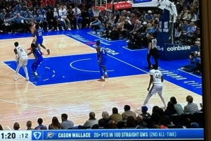 轉播方搞出烏龍:卡森·華萊士連續(xù)100場比賽得分20+,歷史第二多。
