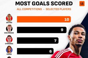 體育資訊12月23日訊 上周末英超第17輪比賽結(jié)束,英國媒體LiverScore列出了本賽季英超部分新援前鋒的進球數(shù),埃基蒂克打入10球排名第一。