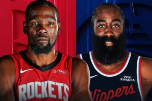 賽前NBA官方曬出海報(bào),寫道:“凱文·杜蘭特(歷史得分榜第8位)將率領(lǐng)火箭隊(duì)前往洛杉磯,挑戰(zhàn)詹姆斯·哈登(歷史得分榜第10位)和快船隊(duì)。”