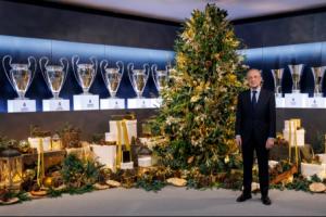 體育資訊12月24日訊 今天是西方傳統(tǒng)節(jié)日平安夜,皇馬官方曬出多組圖片,俱樂部的榮譽室已換上了全新打扮,15座歐冠獎杯被映襯出金光。