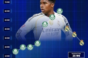 體育資訊12月24日訊 德國轉(zhuǎn)會市場在推特發(fā)動態(tài),曬出了恩德里克的身價走勢。