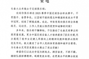體育資訊12月24日訊 長(zhǎng)春大眾卓越女足獲得2025年女子足協(xié)杯冠軍,長(zhǎng)春市體育局、長(zhǎng)春市足球協(xié)會(huì)送上祝賀。