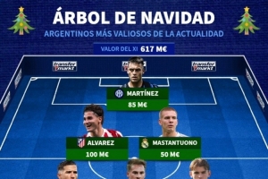 體育資訊12月25日訊 圣誕節(jié)之際,德國(guó)轉(zhuǎn)會(huì)市場(chǎng)排出了阿根廷身價(jià)最高圣誕樹(shù)陣容,勞塔羅、阿爾瓦雷斯、恩佐、麥卡利斯特在列。