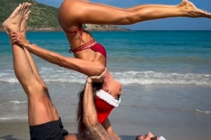 特拉普與未婚妻巴西超模古拉特頭戴圣誕帽,在海灘上展示阿克羅瑜伽高難度動作,特拉普社媒曬出視頻,配文:“我們的熱帶圣誕節(jié)傳統(tǒng),祝愿你與所愛之人共度美好時光,節(jié)日快樂!”
