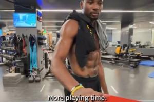 庫明加抽到斯潘塞,禮物:更多的出場時(shí)間(More playing time),庫明加說完拍了兩下抽獎(jiǎng)箱離去