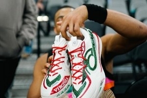 球鞋的配色也采用了圣誕經(jīng)典的紅綠配色,大概率他將會(huì)在明天的圣誕大戰(zhàn)中穿著此雙球鞋。