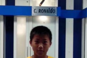 謝文能時隔10多年再次前往伯納烏參觀,曬出兒時與更衣室C羅球衣合影的照片。