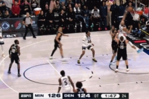 GIF-蘭德爾外線三分不中 戈貝爾大力補扣扣飛了
