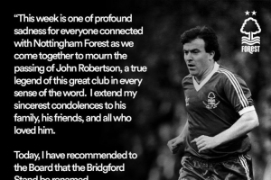 體育資訊12月27日訊 諾丁漢森林傳奇球星約翰·羅伯遜去世,他曾幫助球隊(duì)兩次奪得冠軍杯(歐冠前身)。對(duì)于這樣一名在俱樂(lè)部歷史上舉足輕重的人物,諾丁漢森林老板馬里納基斯提出了一個(gè)緬懷約翰·羅伯遜的方案。