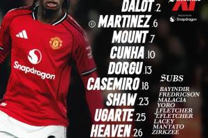 曼聯(lián)替補:巴延德爾(27歲)、齊爾克澤(24歲)、馬拉西亞(26歲)、約羅(20歲)、弗雷德里克森(20歲)、杰克·弗萊徹(18歲)、泰勒·弗萊徹(18歲)、萊西(18歲)、本迪托·曼塔托(17歲)