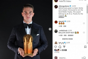 體育資訊9月24日訊 阿森納前鋒約克雷斯更新社媒動態(tài),曬出自己與蓋德-穆勒獎杯的合照。
