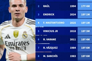 體育資訊9月24日訊 在本輪西甲皇馬4-1擊敗萊萬特的比賽中,馬斯坦托諾破門,成為隊史西甲破門第四年輕的球員,以下為具體榜單: