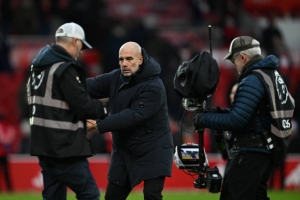轉(zhuǎn)播畫面顯示,瓜迪奧拉憤怒地舉起手臂表達沮喪,并死死盯著鏡頭,隨即用夸張的手勢要求攝像師移到一邊。直到攝像師讓開道路,他才得以繼續(xù)靠近看臺,向球迷鼓掌。