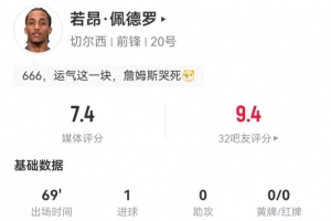 體育資訊12月28日訊 切爾西在本輪英超對(duì)陣維拉,若昂·佩德羅本場(chǎng)數(shù)據(jù)如下: