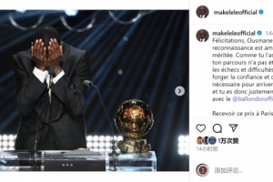 馬克萊萊曬出登貝萊領(lǐng)獎的照片,配文:“祝賀你,奧斯曼??。這份榮譽實至名歸。正如你昨晚所說,你的成長之路并不平坦,挫折與挑戰(zhàn)鑄就了你登頂所需的自信與決心,因此金球獎的獎杯正是你應(yīng)得的回報。在巴黎,在你的隊友、朋友和家人的見證下獲得這個獎項,讓這個時刻變得更加特別。