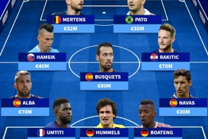 中場(chǎng):哈姆西克、布斯克茨、拉基蒂奇