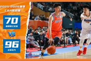 2025-2026賽季CBA常規(guī)賽第7輪焦點戰(zhàn)在祖昌體育館打響,福建晉江文旅男籃坐鎮(zhèn)主場迎戰(zhàn)開局六戰(zhàn)全勝的北京北汽男籃。盡管主隊首節(jié)打出驚艷表現(xiàn),限制北京北汽男籃單節(jié)僅得9分,并領先8分進入第二節(jié),但第二、第三節(jié)主隊未能頂住對手的強勢反撲,最終以70-96不敵北京北汽男籃,未能延續(xù)上輪擊敗廣州的勝勢。四節(jié)比分分別是:17-9,10-31,20-31,23-25(福建晉江文旅男籃在前)。
