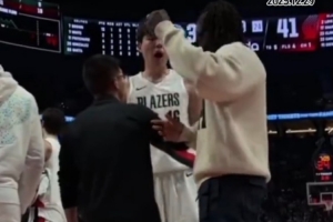 體育資訊12月29日訊 今日開拓者114-108主場戰(zhàn)勝凱爾特人,比賽中的一次暫停時朱·霍勒迪對楊瀚森進行了指導(dǎo)。