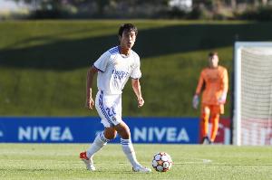 “我參加了一個在日本舉辦的皇馬基金會訓(xùn)練營,大約有400名孩子參加,他們選出的最有價值球員(MVP)有機會去皇馬青訓(xùn)試訓(xùn),加入Alevín B隊。我在那個訓(xùn)練營中成功當(dāng)選MVP,因此有機會去巴爾德貝巴斯試訓(xùn)。那時我大概九歲,我父親被告知我只有0.01%的可能被簽下,但考慮到這是一次很好的經(jīng)歷,我父母決定讓我去試試。我在那里訓(xùn)練了一周半到兩周的時間,很幸運能和非常出色的隊友們以及像何塞·曼努埃爾·拉拉這樣的好教練一起訓(xùn)練。在一場對陣比我大一歲孩子的友誼賽中,我被安排踢前鋒,并且進了一球。那場比賽我表現(xiàn)得非常好,兩周試訓(xùn)結(jié)束后,皇馬決定與我簽約。”